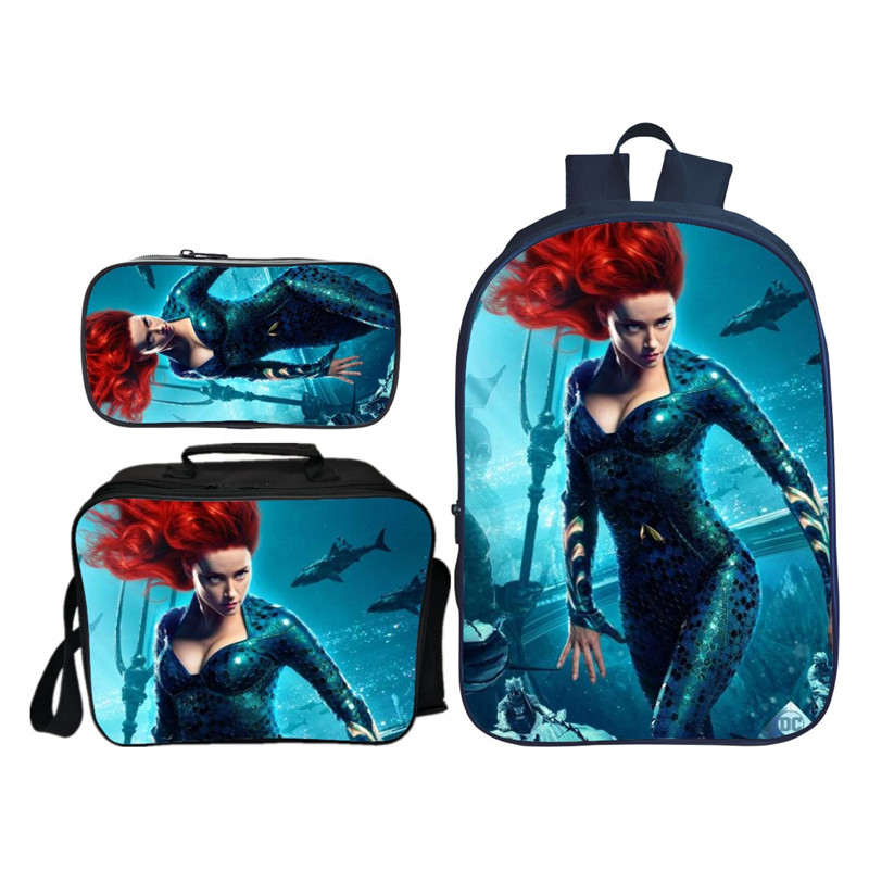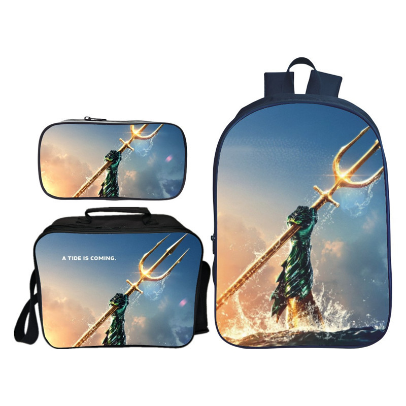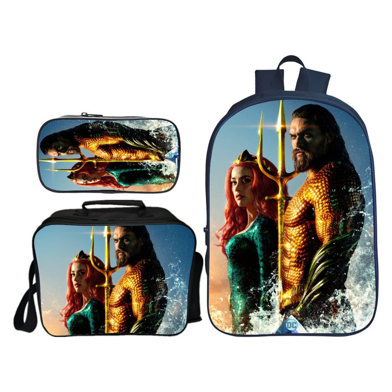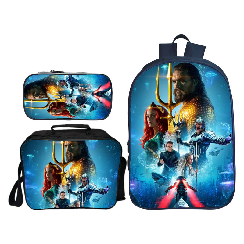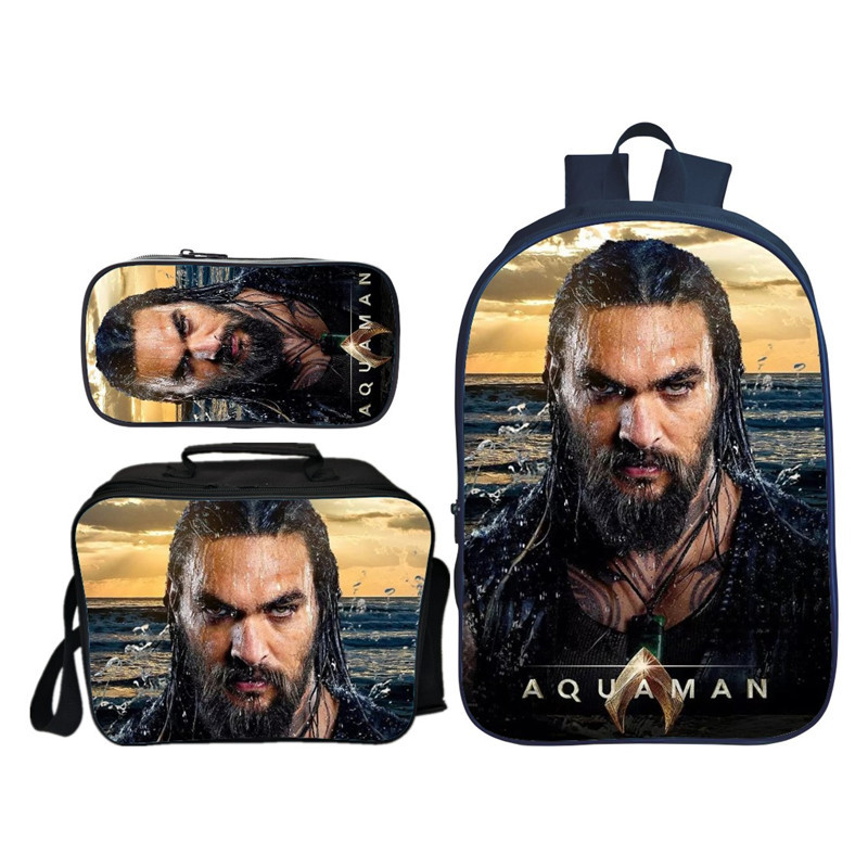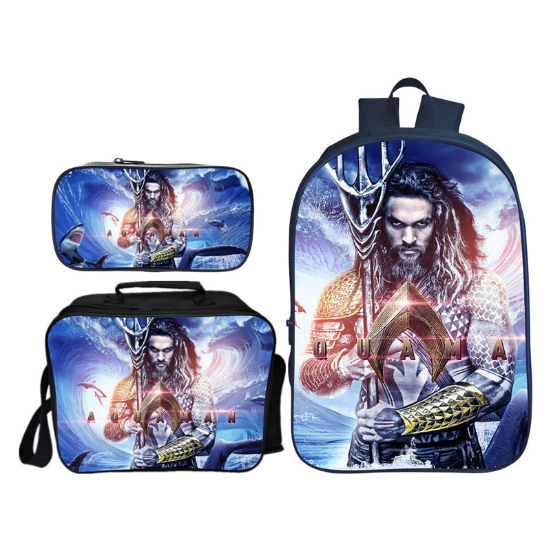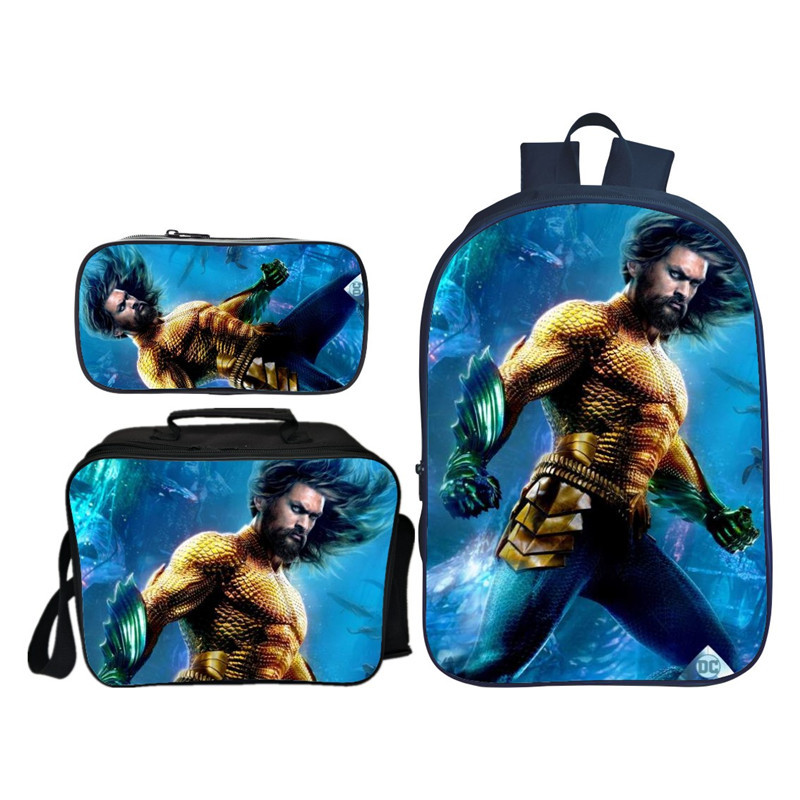 16″Aquaman Backpack School Bag+Lunch Bag+Pencil Bag
