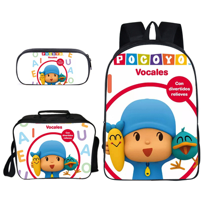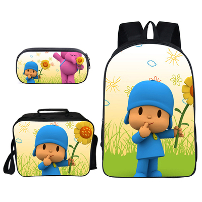 16″POCOYO Backpack School Bag+Lunch Bag+Pencil Bag