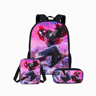 18″Spider-Man: Into the Spider-Verse Backpack School Bag+Messenger Bag+Pencil Bag