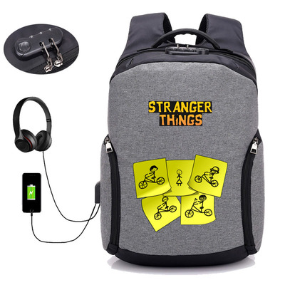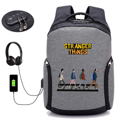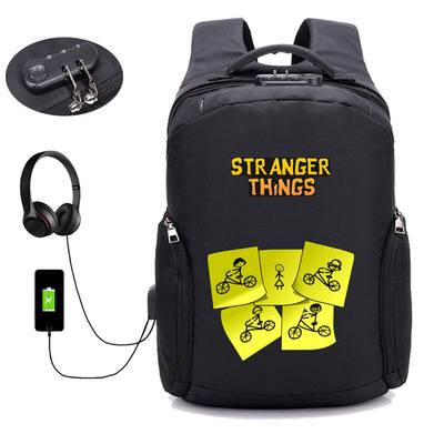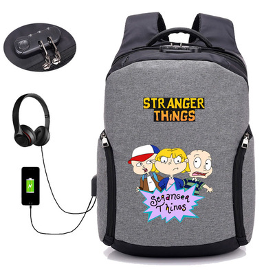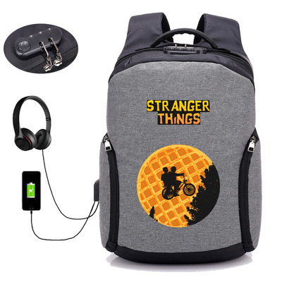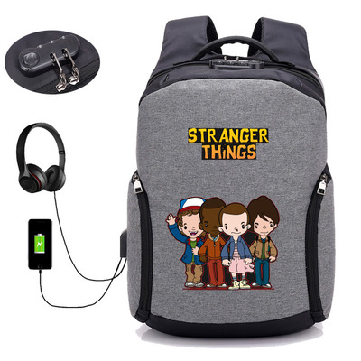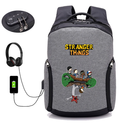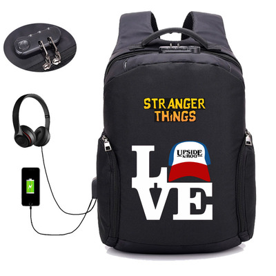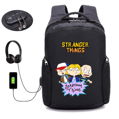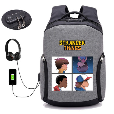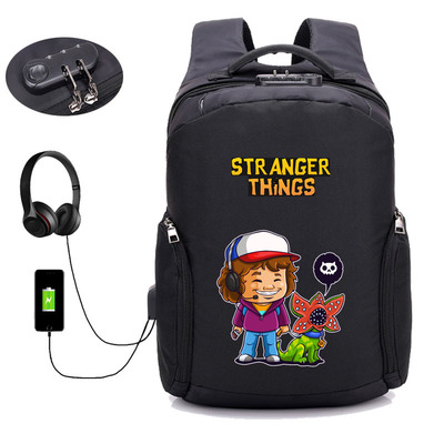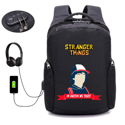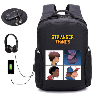 18 Inch StrangerThings USB Backpack School Bag Combination Lock