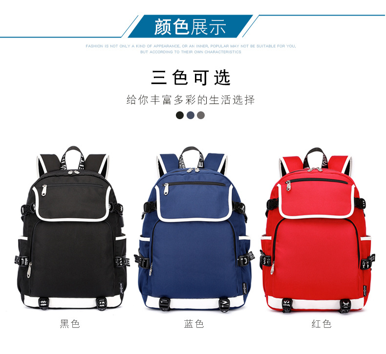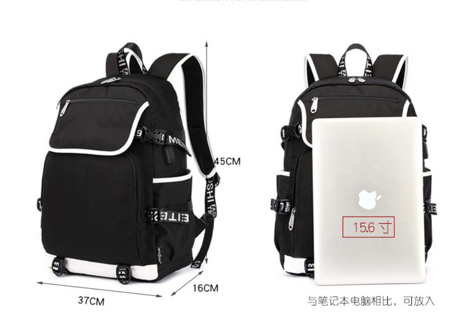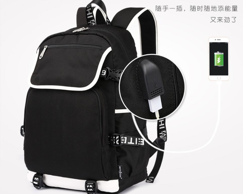 18“Fortnite USB Backpack School Bag Black Red Blue