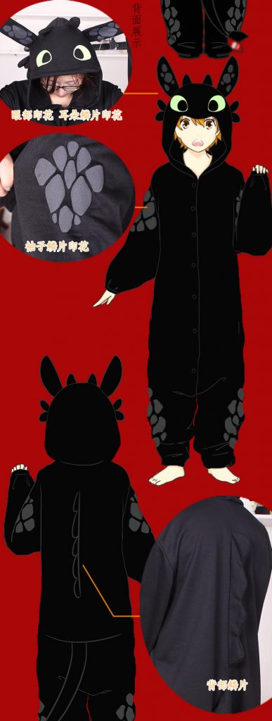 > How to Train Your Dragon Toothless cosplay pajamas one-piece sweatshirt cotton
