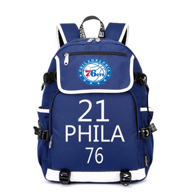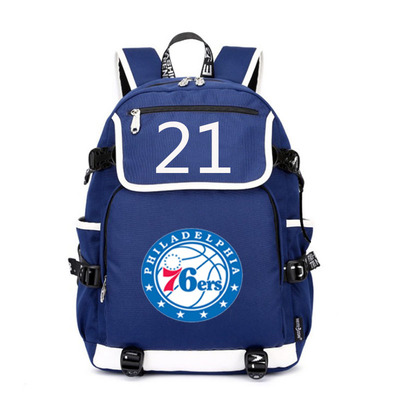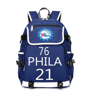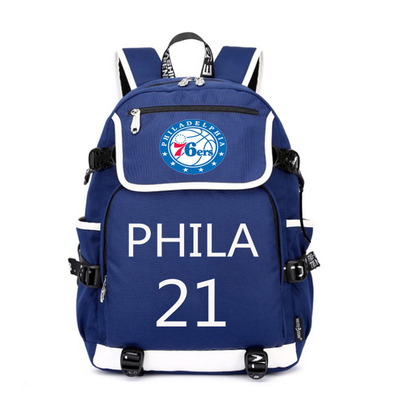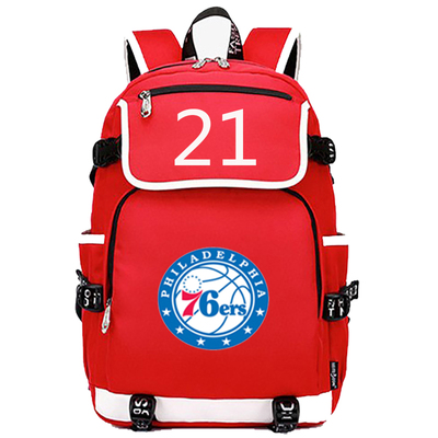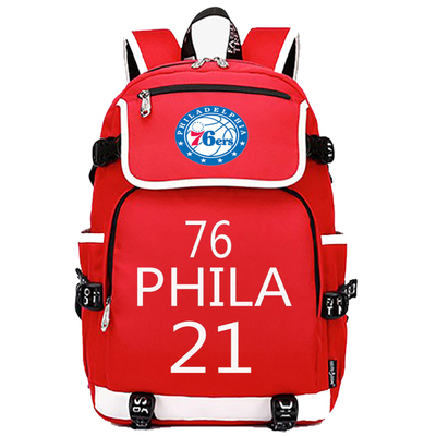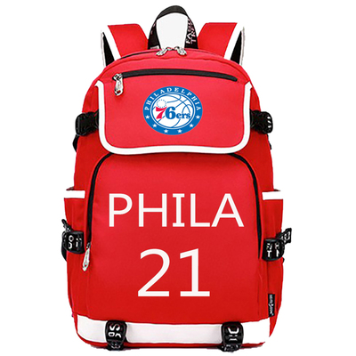 NBA Milwaukee Bucks Philadelphia 76ers The Alphabet Joel Embiid USB Backpack School Bag Black Red Blue
