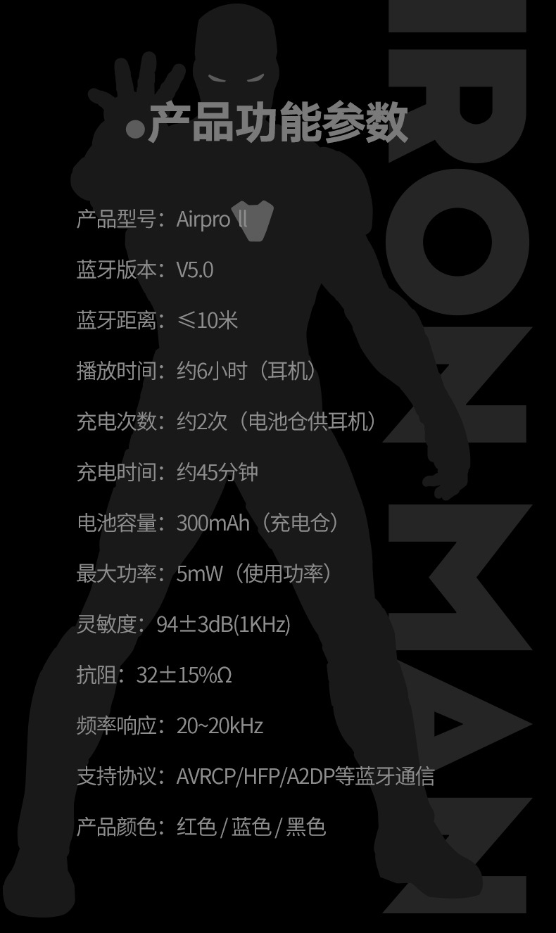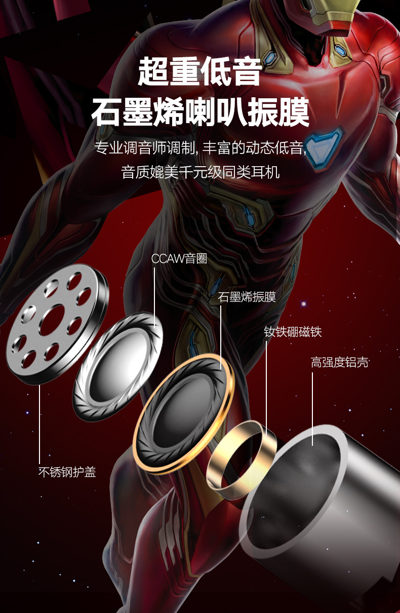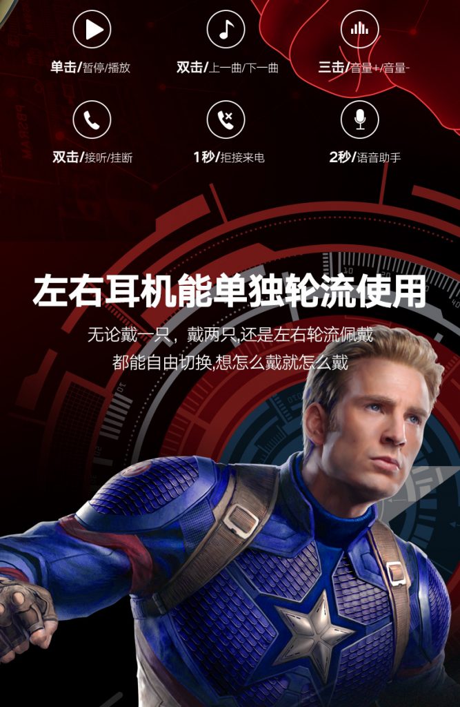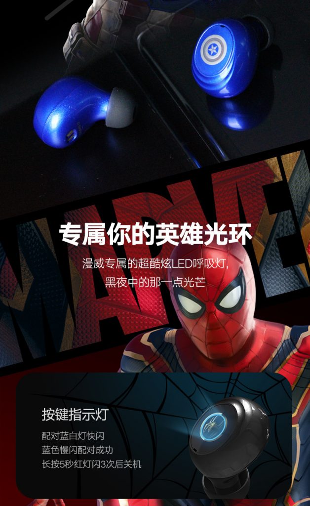 > Avengers Endgame Wireless Bluetooth headphone touch-in Noise Reduction running sports music mini headphone
