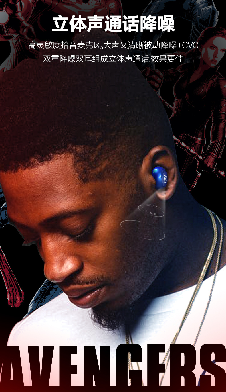 Avengers Endgame Wireless Bluetooth headphone touch-in Noise Reduction running sports music mini headphone quantity