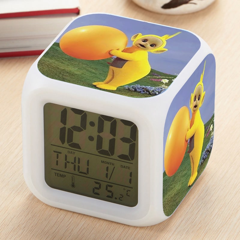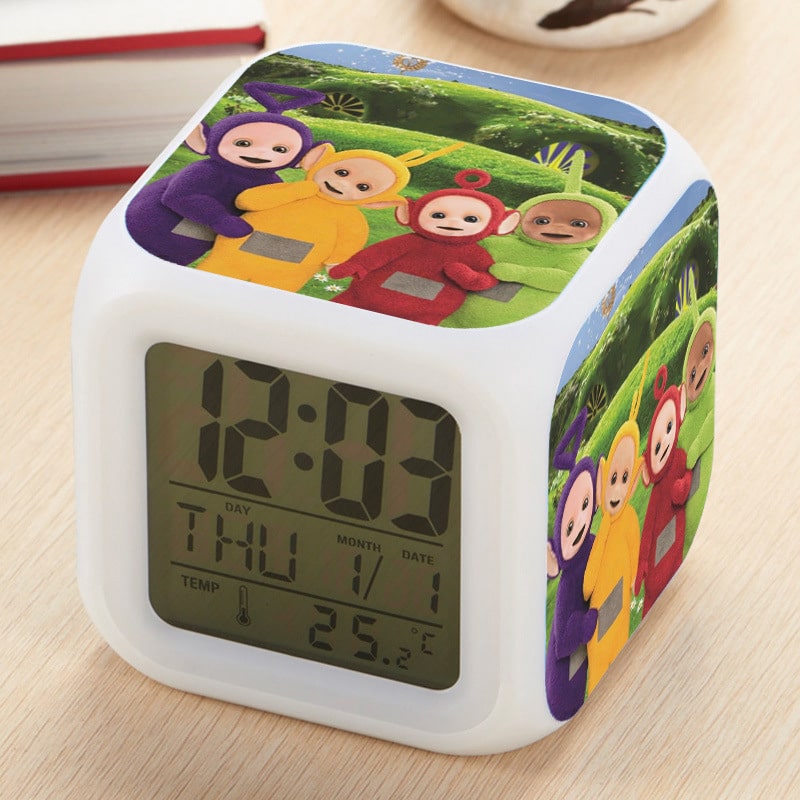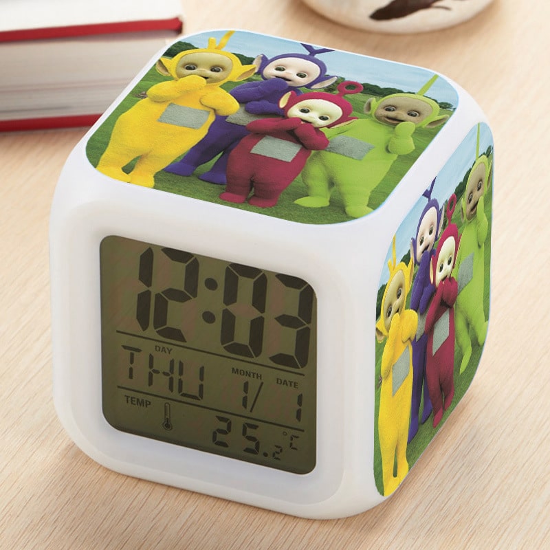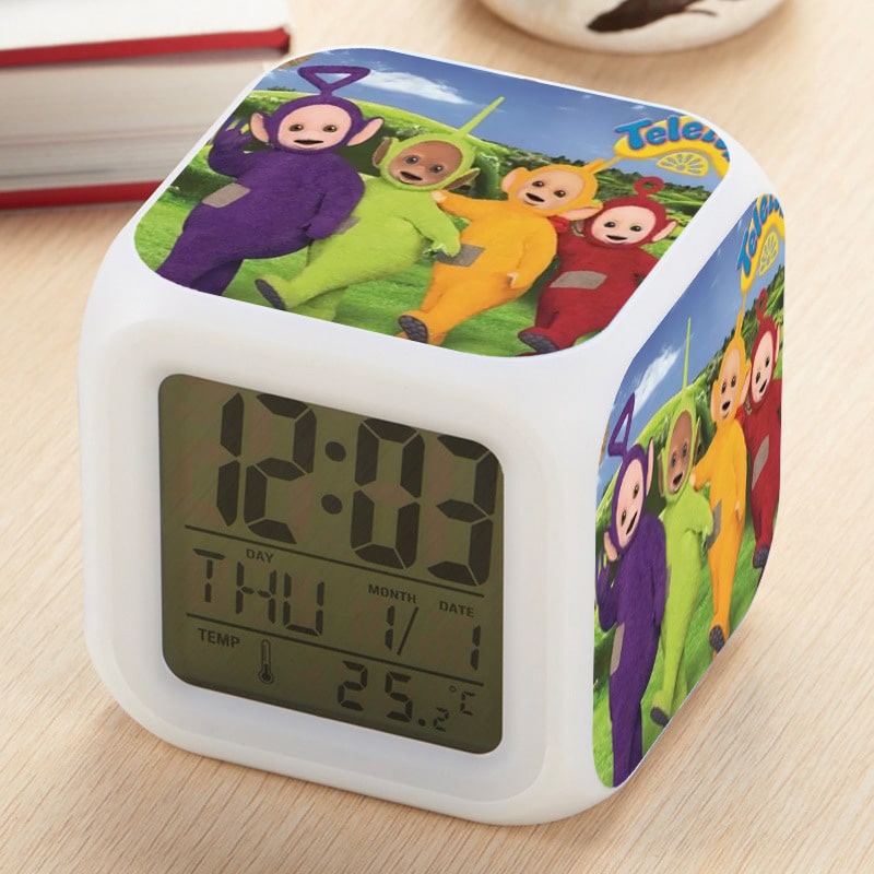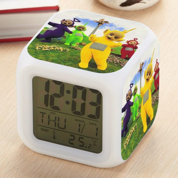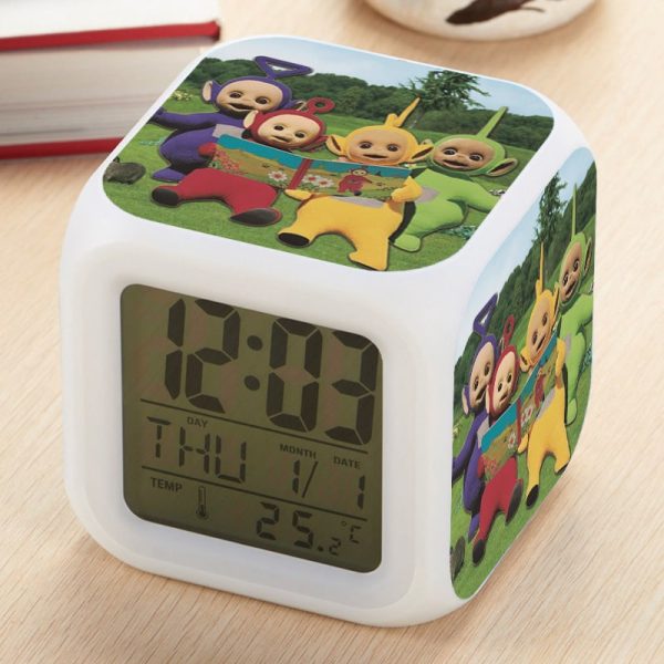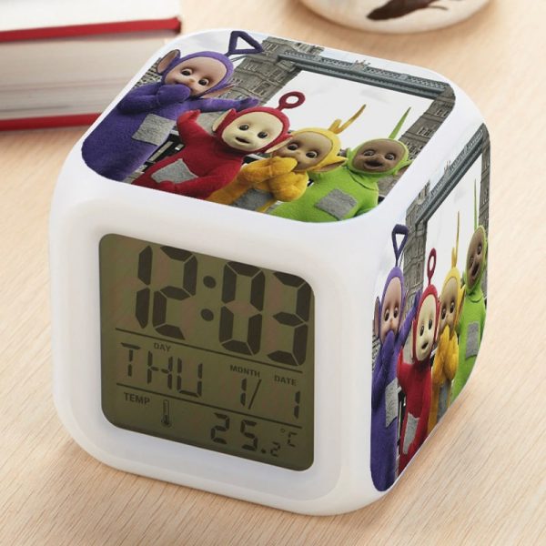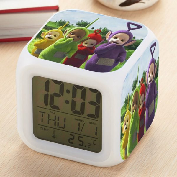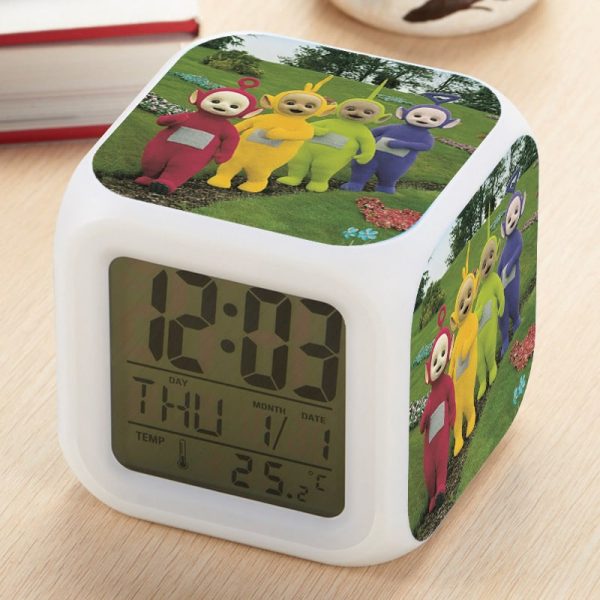 Teletubbies Alarm Clock Led Light 7 Color Change Electronic Desk Watch Square Table