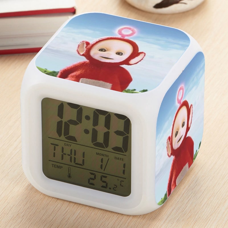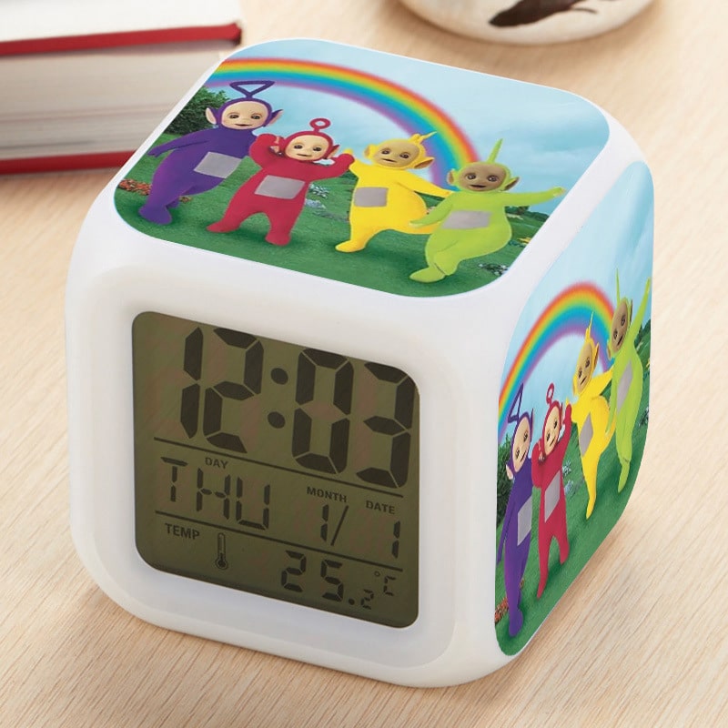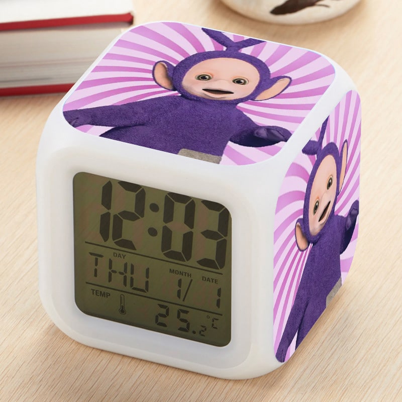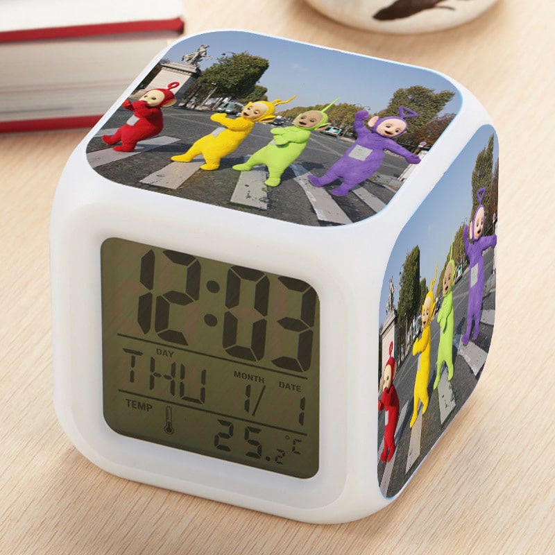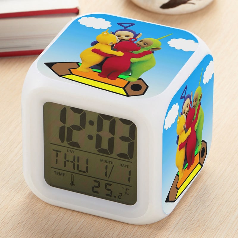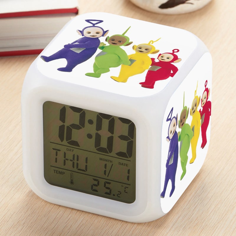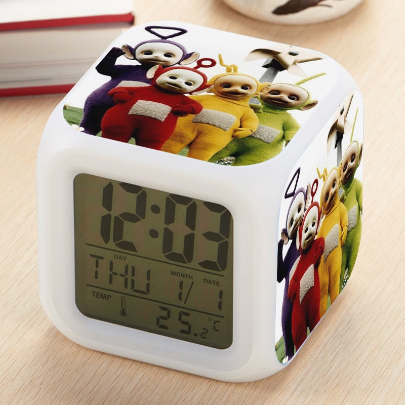 Teletubbies Alarm Clock Led Light 7 Color Change Electronic Desk Watch Square Table